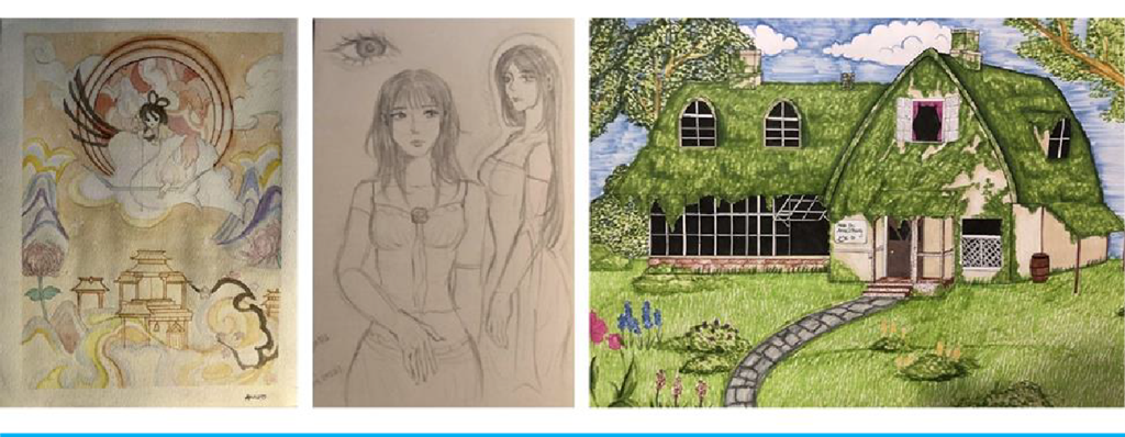 Anna Z. is a Chinese-Canadian artist in Grade 10. She has been interested in the Fine Arts since she could read and write. Her works explore all types of media, such as watercolour, acrylic, marker, graphite and pencil crayon. Anna’s art evokes emotions of wonder and often has a fantastical and stylised approach. When drawing characters, her sketches are distinguished through smooth and fluid strokes. In one of her pieces, she was inspired by a book published by Sue Lye Tann, titled "Heart of the Sun Warrior". It is a fantasy romance story, based on the traditional legend of the Chinese Moon Goddess. Through this, Anna was able to incorporate her culture and love for whimsical and mystical artistic styles. Additionally, she has expressed a desire to pursue Fashion Studies and Design. Anna wishes to improve her design skills and ability to create original concepts for clothing. She frequently practices sewing and wants to continue to further her practice within the discipline. With her art she consistently creates beautiful cohesive compositions, and she demonstrates years of practice and understanding.