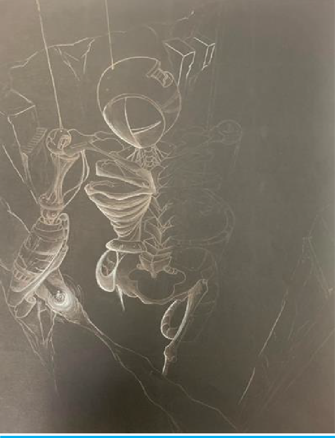 Raymond finds his inspiration through various video game concept artists and illustrators. He is also inspired by what he sees in the media and visual arts. Raymond uses art to help express his thoughts, allowing him to portray his ideas to others. Graphite and charcoal are the mediums that Raymond prefers to use when creating his art pieces. He tends to begin with a rough sketch and then continues on to the good copy. Raymond finishes by adding more intricate features, ending with a beautiful final product.