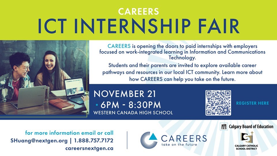 Check out the programs at www.cbe.ab.ca/uniquepathways For more information, see Mrs Jennifer Canu-Budd Mondays, Wednesdays and occasionally Fridays at her desk in the learning commons. Schedule posted at the desk. You can also email questions to jlcanubudd@cbe.ab.ca.